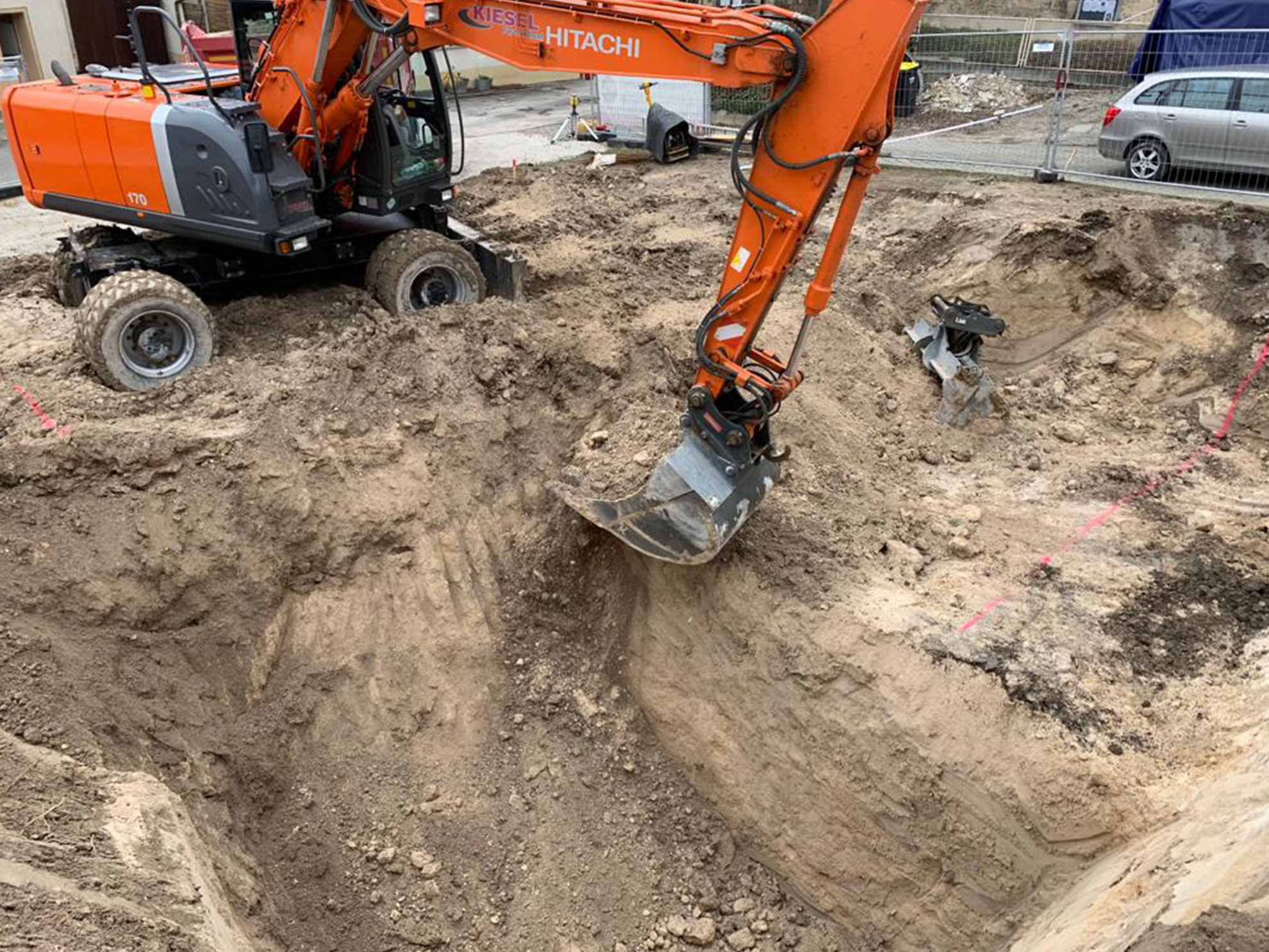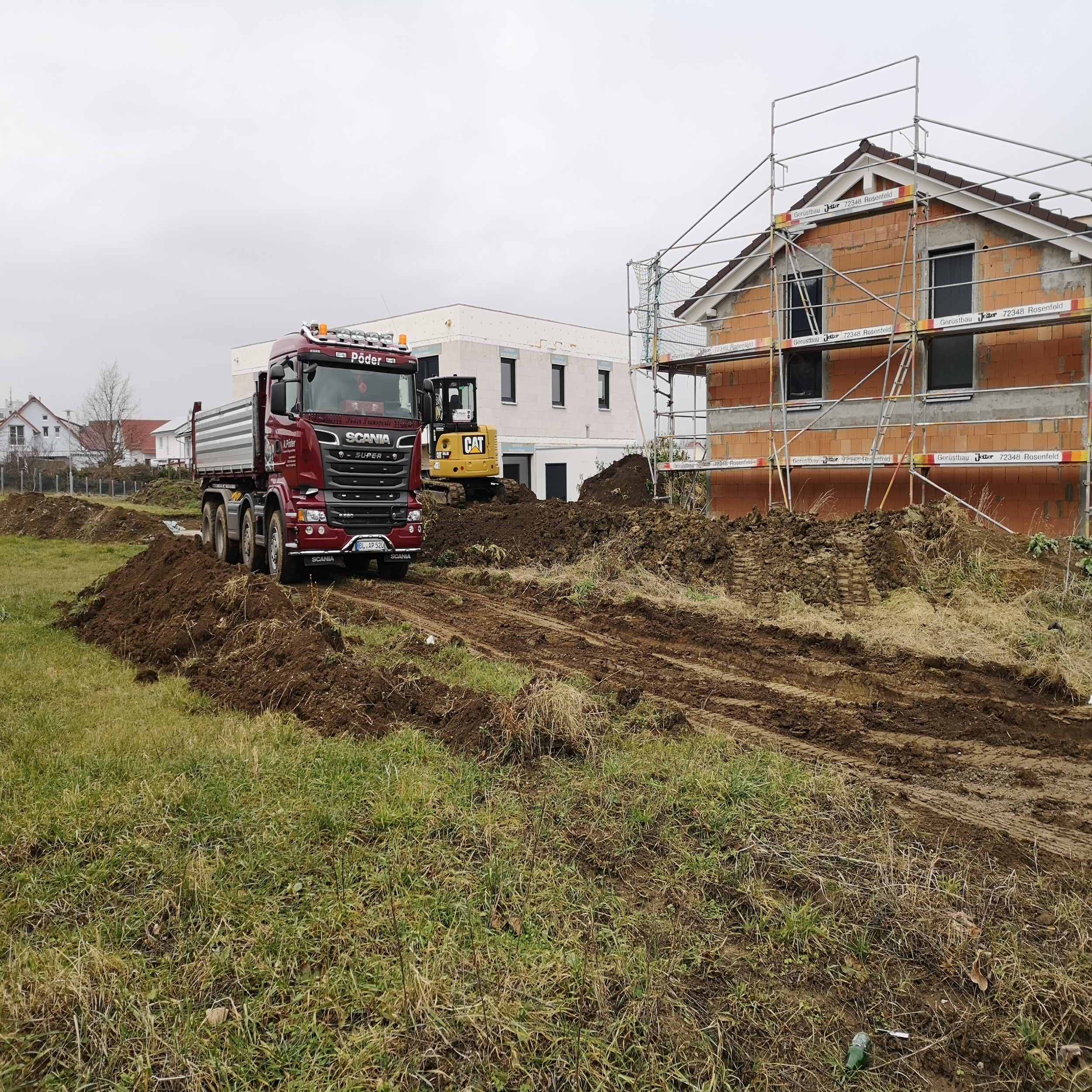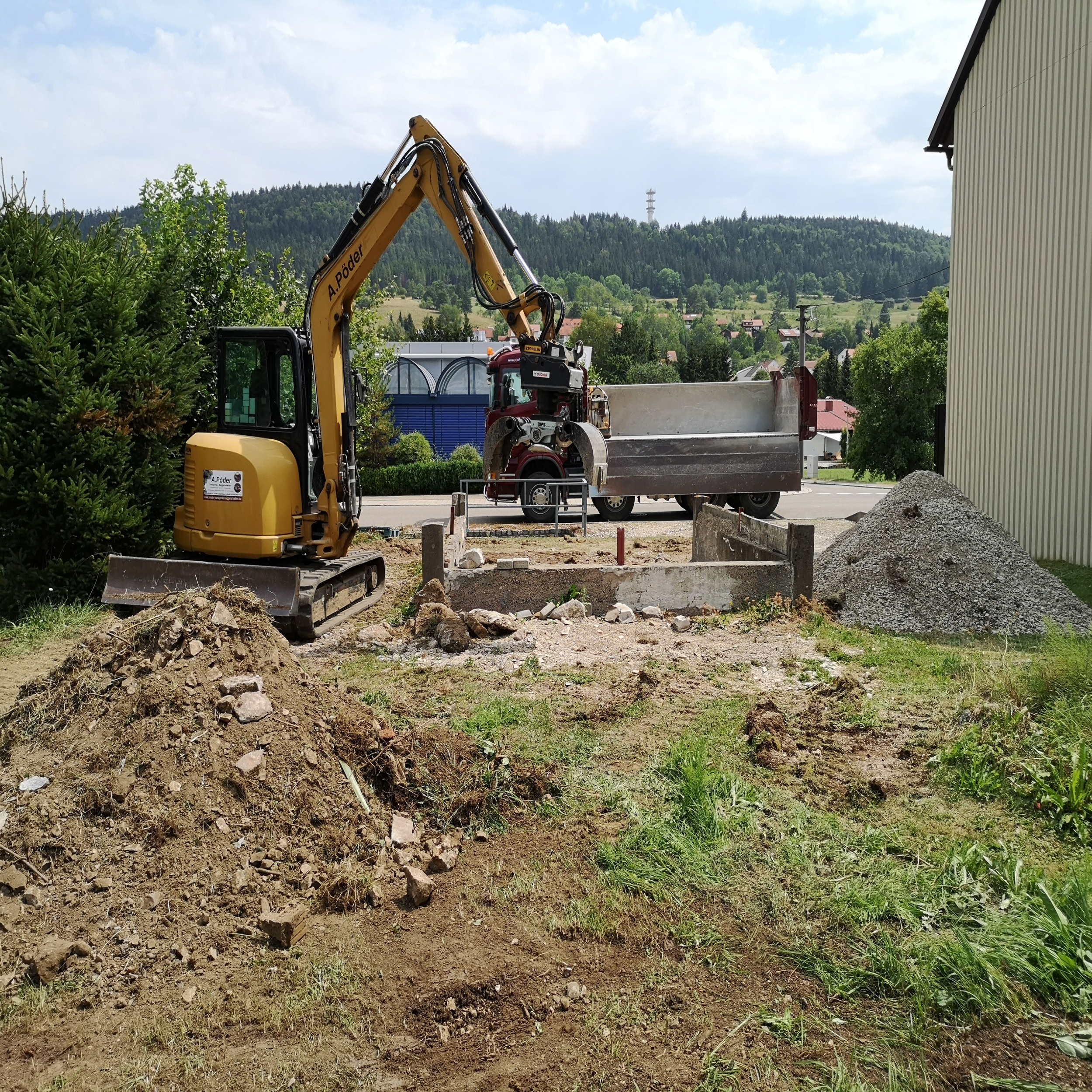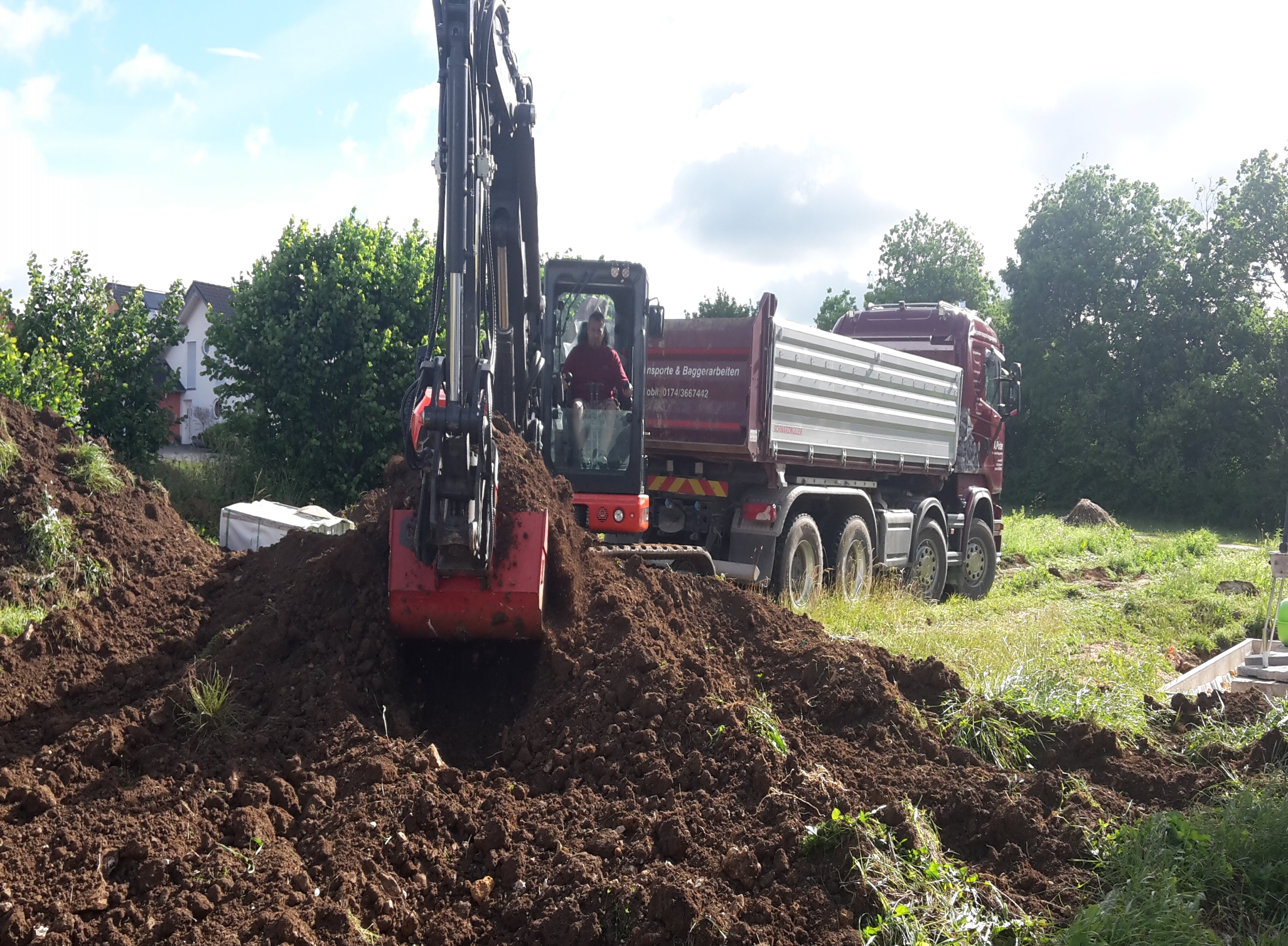 Wir bieten Ihnen Erdbewegungen in jeder Größenordnung wie Baugrubenaushub, Fundamentaushub und Hofauskofferungen an.
