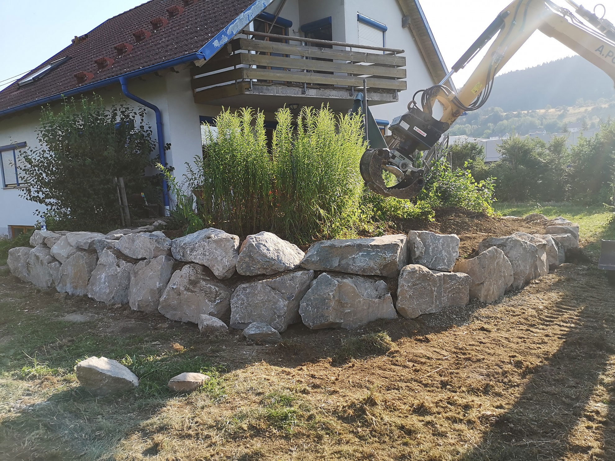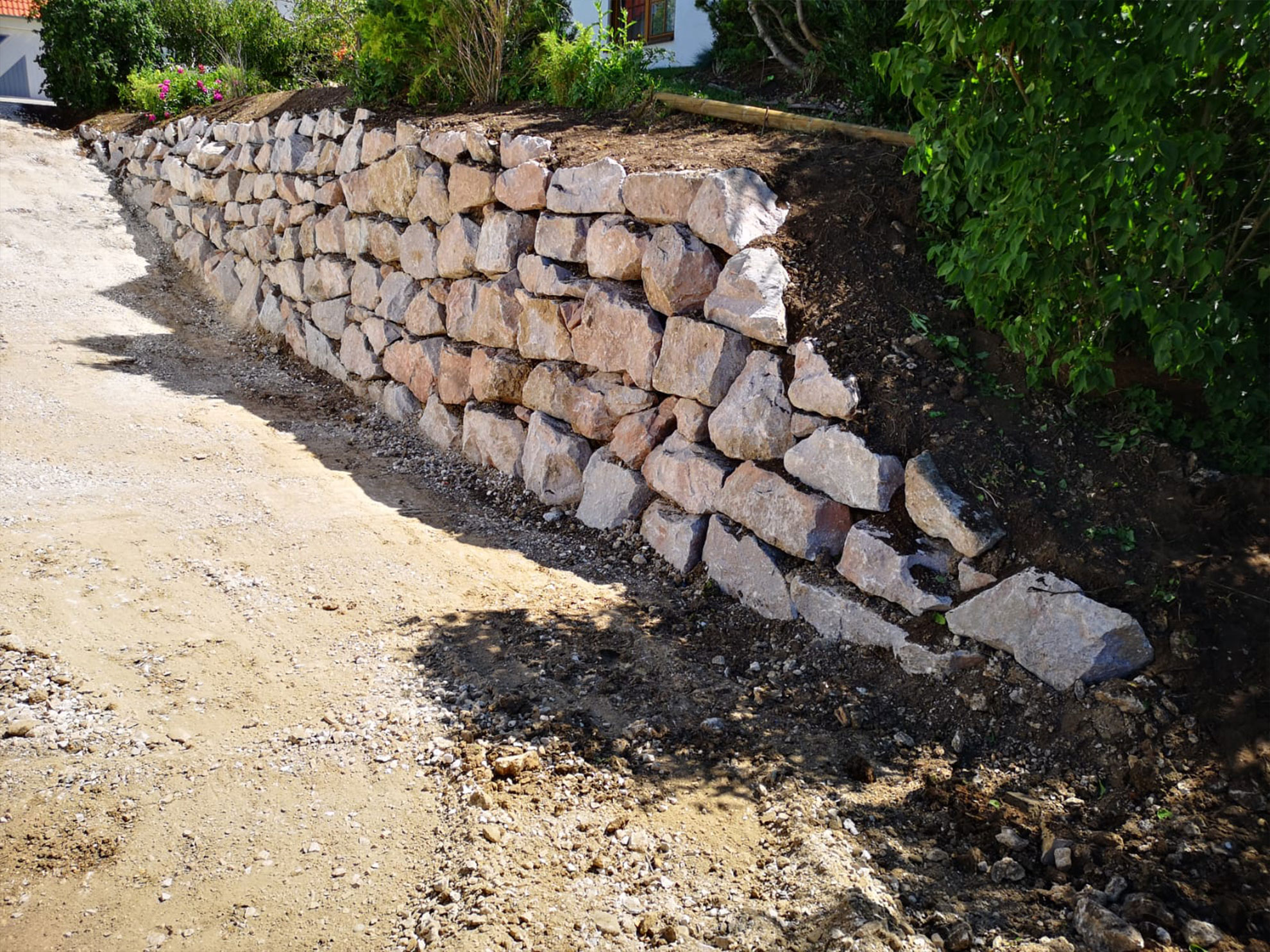 Wir planen und erstellen Ihre Natursteinmauern aus unförmigem oder quadratischem Granit, Jurakalk, Muschelkalk fachmännisch, kompentent und zuverlässig. Lassen Sie sich gerne von uns beraten.