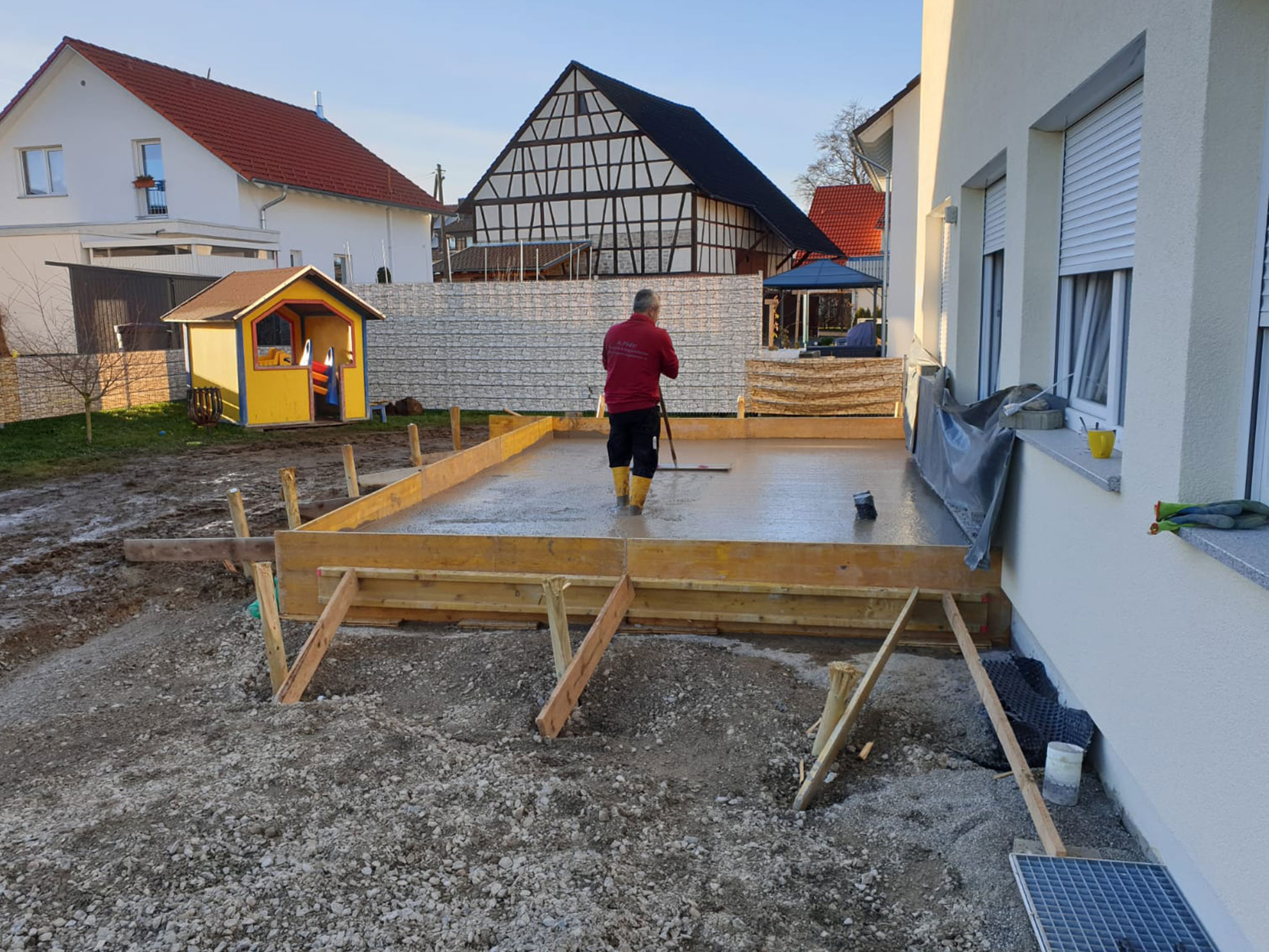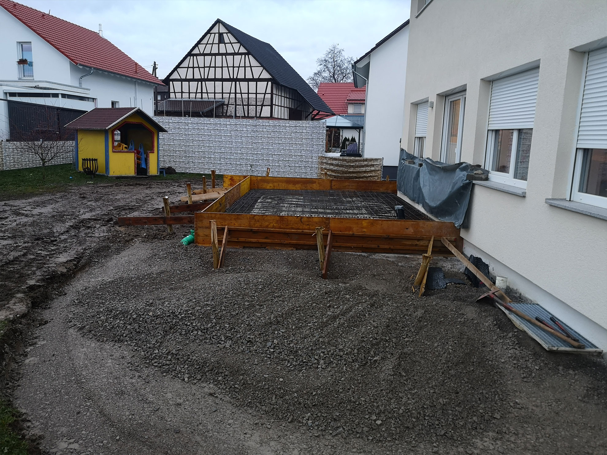 Wir erstellen Bodenplatten für z.B. Gartenhäuser, Anbauten, Garagen oder Fertighäuser schnell und fachgerecht.